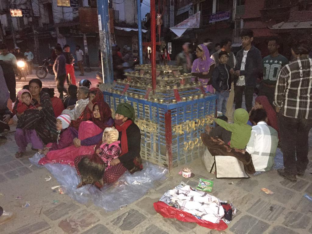 Kvinner og barn søkte sammen på gatene i Khatmandu etter jordskjelvet 25 April